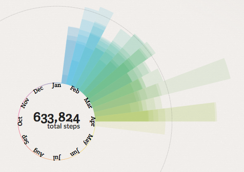 Notch provides a pretty slick and fun set of visualizations based on data from fitbit and/or runkeeper. Right now they’re focused on some fun run graphics, but I’m not much of a runner, so I’m hoping for some good bike ride visualizations in the future. Here’s a snapshot of the “Kodachrome” steps calendar.